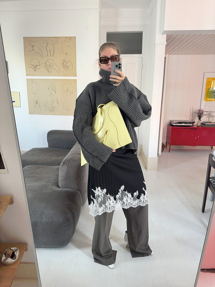 Then came another question: what does contemporary wardrobe feel like for me now? Many of Phoebe’s pieces belong so strongly to their season - and that season might be ten years ago. They’re often self-sufficient, difficult to layer, difficult to dress down. So I felt like I needed another pair of eyes and another congenial mind to solve this puzzle.